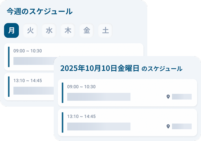 ※休講・補講・教室変更があった場合は、日毎のUNIPAデータ連携により更新・反映されます。