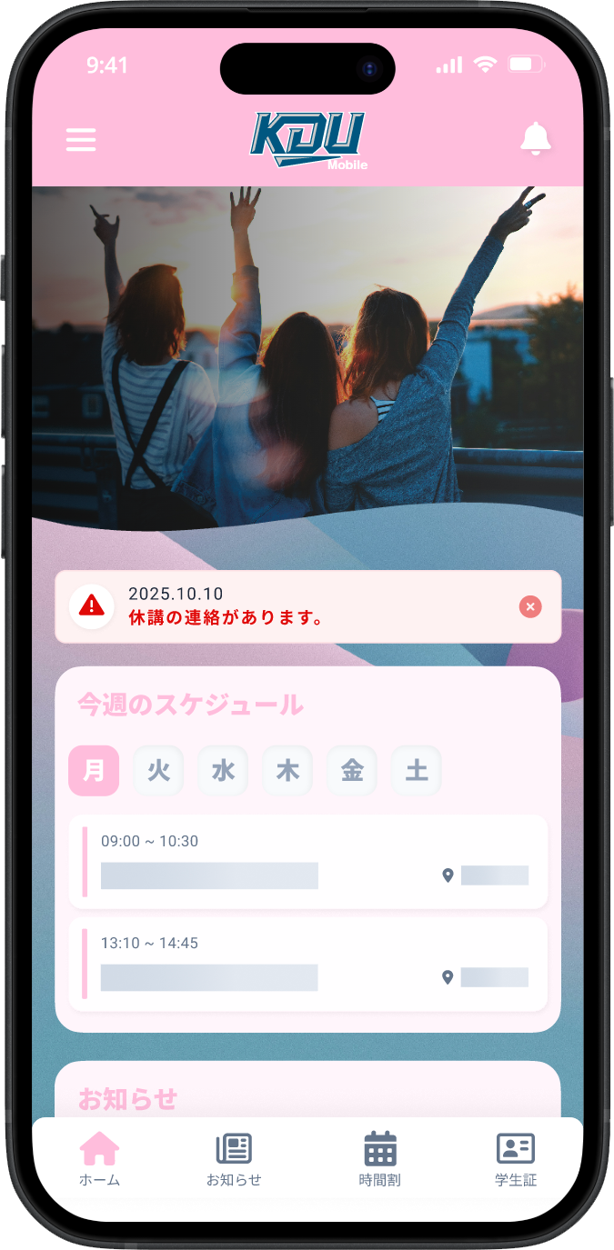 ⼤学からのお知らせが表⽰されます。