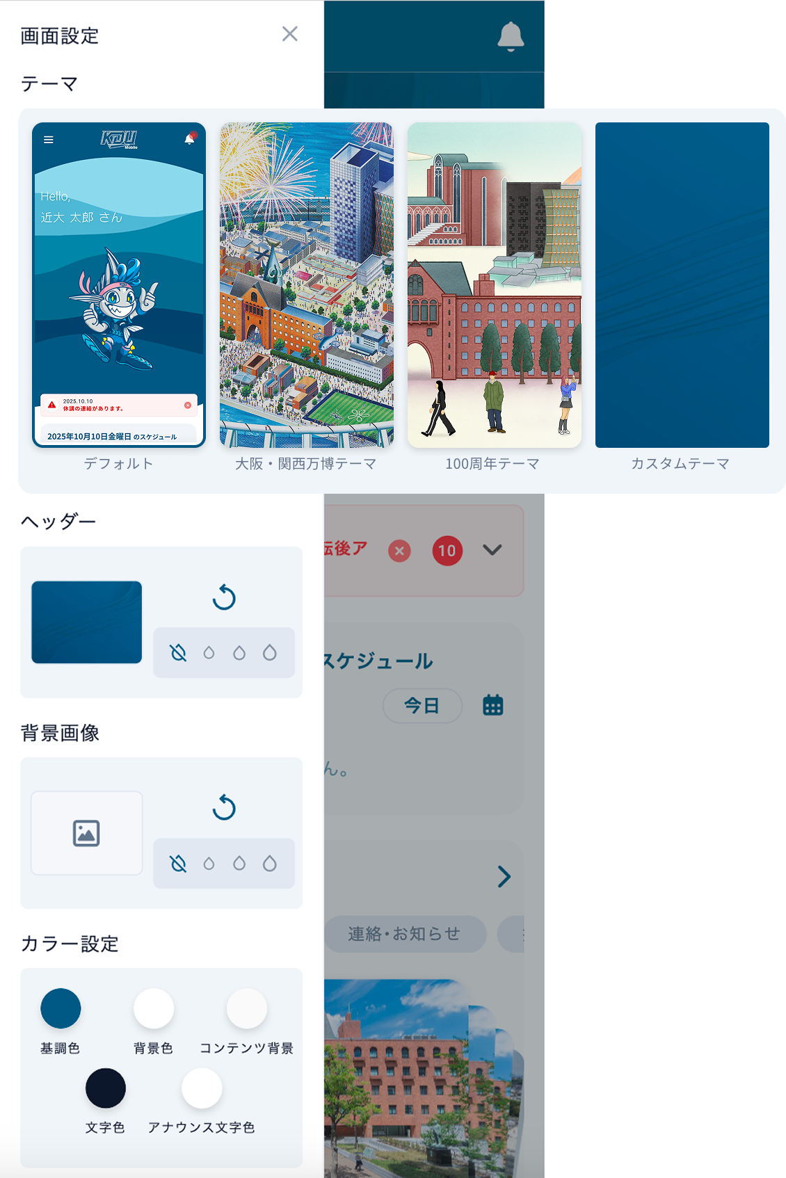 カスタムテーマでは、自分の好きな画像をアップロードしたり、色を変更してより自分好みの画面にすることができます。
