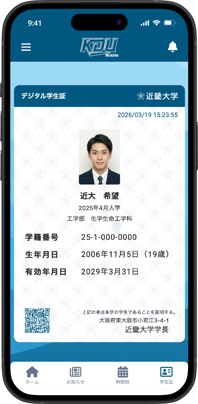 スマートフォンで簡単に学生証を提示することができます。